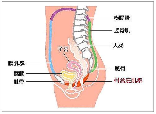 盆底肌我们可以想象一个人站立的时候,我们有一个骨盆的概念,骨盆下面有一个横格,可以把它想象成一个吊窗或者摇篮,这个吊床是中间有三个通道,最前面是尿道,中间是产道,后面就是肠道,这样想象各位网友应该会想象,它是一个矩形画面,这个横格就叫盆底。
